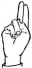 На ћирилици написано КАЗИМИР ПЕТРОНИЈЕВИЋ састоји се из 19 слова [?]. Исписано ћириличном једноручном азбуком за глувонеме: